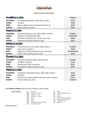 Jídelníček základní školy platný v týdnu od 24. do 28.11.2025